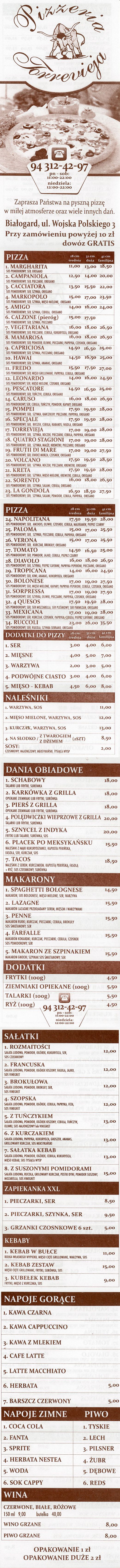 Zapraszamy Państwa na pyszną pizzę w miłej atmosferze.