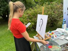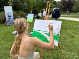 Atmosfera wydarzenia była wyjątkowa – pełna kreatywności, radości i barw. Uczestnicy z ogromnym zapałem oddawali się malarskiej pasji, a ich prace wypełniały park niezwykłą energią i kolorem. Spotkanie okazało się nie tylko okazją do artystycznej ekspresji, lecz także do integracji i wspólnego spędzenia czasu w inspirującym otoczeniu.