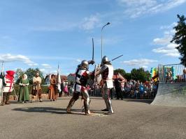 16:00 na placu S. Wyspiańskiego potyczka rycerska i początek turnieju miast Białogard - Świdwin, 13 bezkrwawych i zabawnych konkurencji; transmisja zmagań na telebimie;