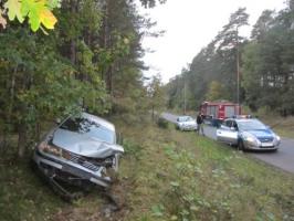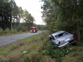 O godzinie 17.30 na trasie Białogard -Zaspy Małe doszło do zdarzenia drogowego. Samochód Volkswagen pasat jadący w stronę Białogardu wypadł