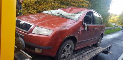 W poniedziałek kilka minut przed godz 8 na drodze wojewódzkiej nr 163 doszło do groźnie wyglądającego zdarzenia drogowego z udziałem jednego auta osobowego marki Skoda Fabia.