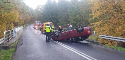 Jak udało nam się ustalić na miejscu zdarzenia autem podróżował jeden mężczyzna, to 40 letni mieszkaniec Poznania. 40 latek jechał od Połczyna Zdroju w kierunku Białogardu, na łuku drogi w pobliżu Tychówka w wyniku niedostosowania prędkości do warunków panujących na drodze stracił panowanie nad pojazdem, zjechał na przeciwny pas ruchu, uderzył w bariery a następnie dachował. Na szczęście nic mu się nie stało. Mężczyzna został ukarany mandatem karnym.