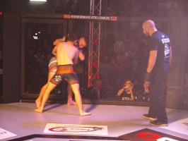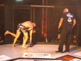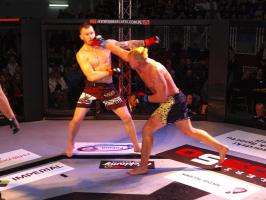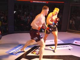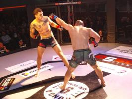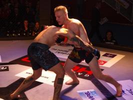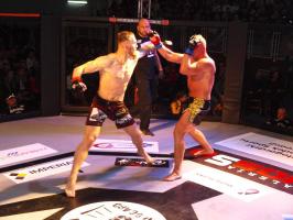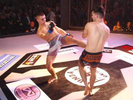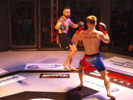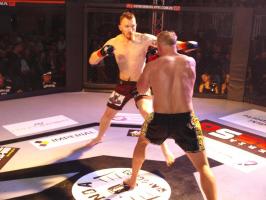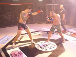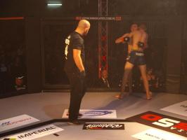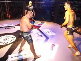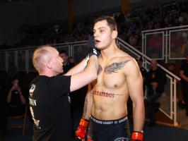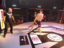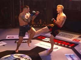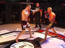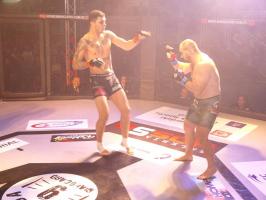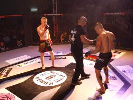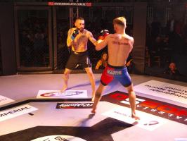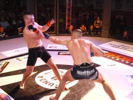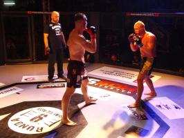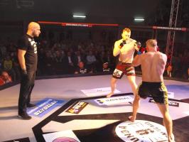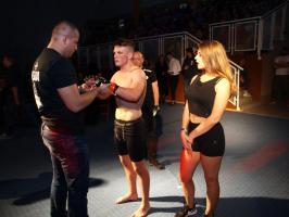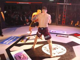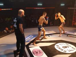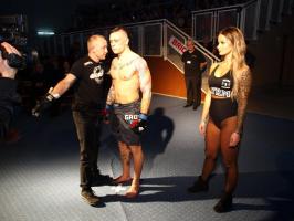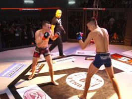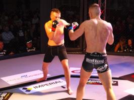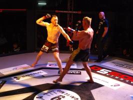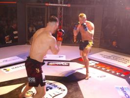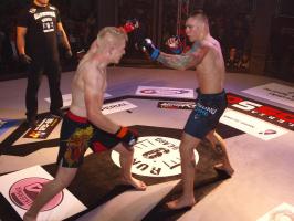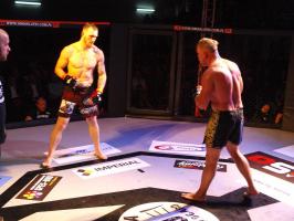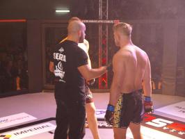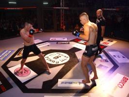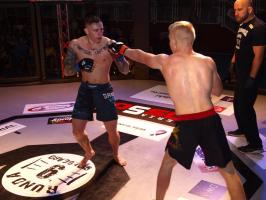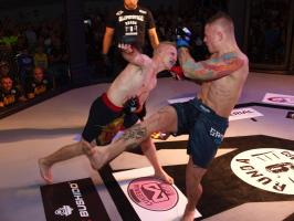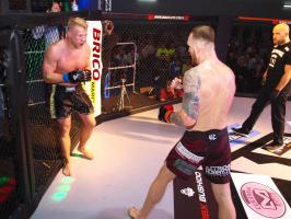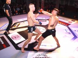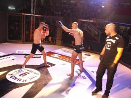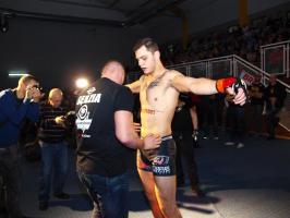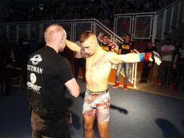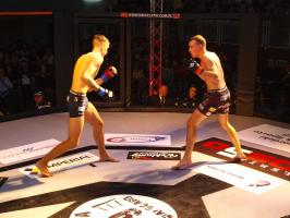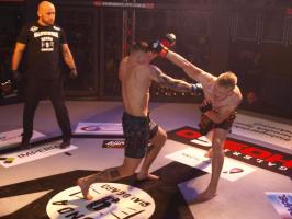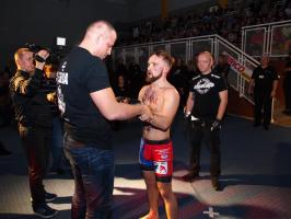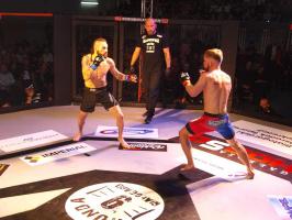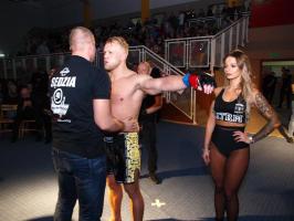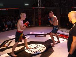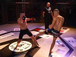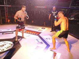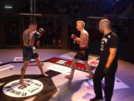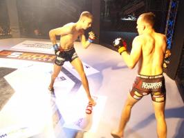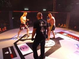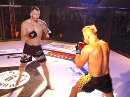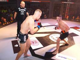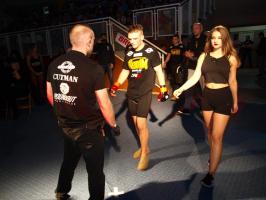 W pierwszej walce, w kat. do 61 kg, Kacper Matyszewski (Mighty Bulls Gdynia) zmierzył się z białogardzianinem Grzegorzem Stabachem (MLA - Marcin Łazarz Academy, Ronin Gold Team Koszalin). Starcie toczyło się głównie w stócje, z próbami wyprowadzenia ciosów pięściami. Jednogłośną decyzją sędziów wygrał Stabach, co było początkiem efektownej serii gospodarzy.