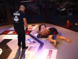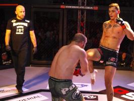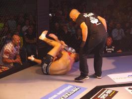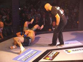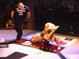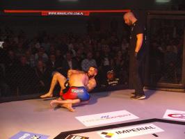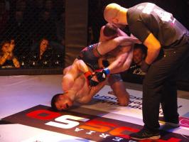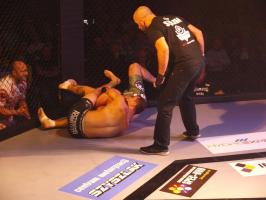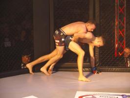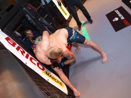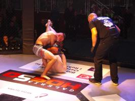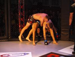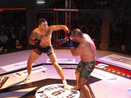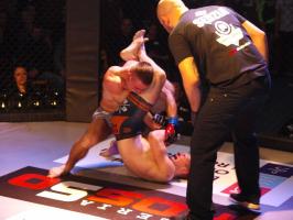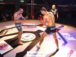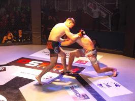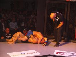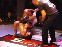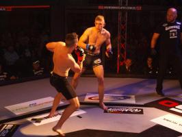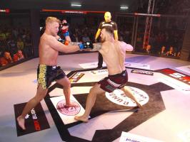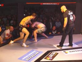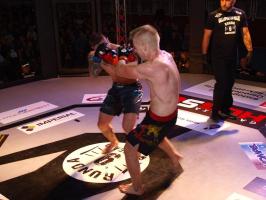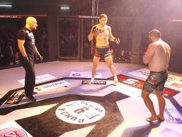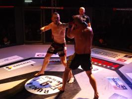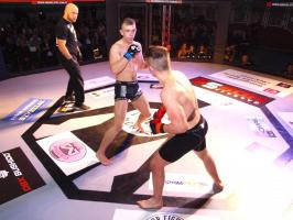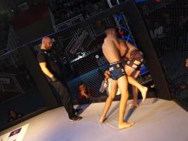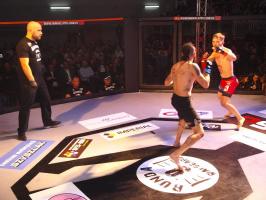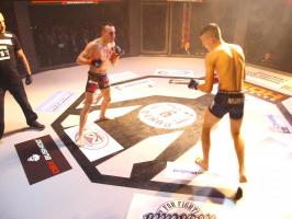 Następnie kolejny fighter z regionu, Dawid Romański (ANKOS MMA/AKS Grappling Białogard) pokonał Gruzina Nodara Khotenashviliego (Top Team Georgia). Białogardzianin, po uderzeniach w stójce i low-kickach, sprowadził przeciwnika do parteru i w 1. rundzie zastosował skuteczne duszenie trójkątne rękoma.