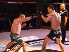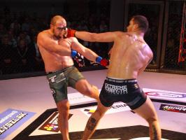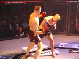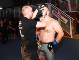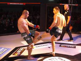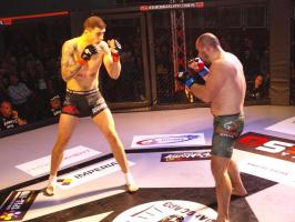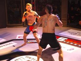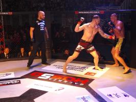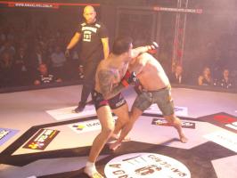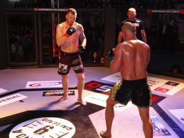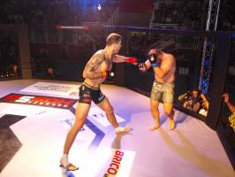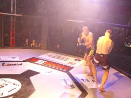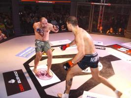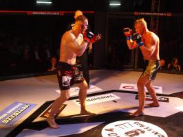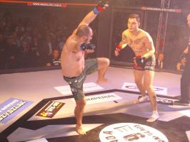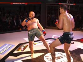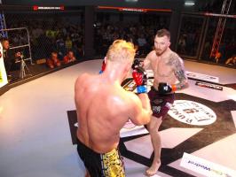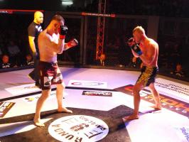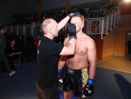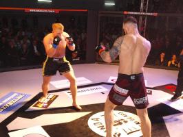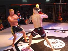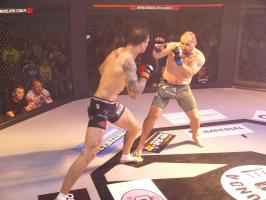 I wreszcie w walce wieczoru Piotr Kalenik (Vale Tudo Białystok) zmierzył się Marcinem Łazarzem z Białogardu. Łazarz w dobry sposób udokumentował swoje doświadczenie w oktagonie (przed tym starciem miał na koncie 18 pojedynków, w tym 11 wygranych). Zaczął od efektownego kopnięcia z wyskoku, by następnie trzymać rywala na dystans, z racji tego, że dysponował lepszym zasięgiem ramion. W końcu doprowadził do tego, że rozciął Kalenikowi łuk brwiowy, a ten szybko zaczął zabarwiać na czerwono podest oktagonu. Ostatecznie wytrwał do końca walki, ale w całym jej przekroju lepiej punktował Łazarz, przypieczętowując passę białogardzian podczas 9. edycji gali.