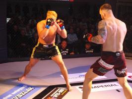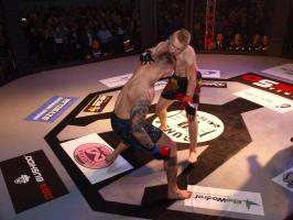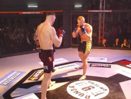 W kat. do 66 kg - jednocześnie ostatniej walce amatorskiej tego wieczoru - Maciej Berkieta (MMATALEO Słupsk) zmierzył się z Adrianem Wieliczko (Ronin Gold Team Białogard). Tu po raz pierwszy pojedynek zakończył się przedwcześnie, bo poprzez duszenie trójkątne nogami wygrał Wieliczko. Starcie było zróżnicowane, od walki w stójce, po próby sprowadzenia do parteru. W pierwszym starciu z karty głównej Seweryn Kucharski (Przemol Boxing Team) walczył z wywodzącym się z Białogardu fighterem Czerwonego Smoka Poznań, Damianem Piwowarczykiem (dla obu był to debiut w zawodowej formule). Po okładaniu się w stójce jednogłośnie wygrał Piwowarczyk.