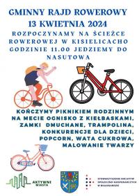 W sobotę (13.04.2024) o godzinie 11:00 odbędzie się GMINNY RAJD ROWEROWY w Białogardzie. Rajd rozpoczyna się na drodze rowerowej w Białogardzie w okolicach Kisielic i zakończy się w Nasutowie gdzie odbędzie się piknik.