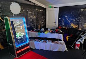 Poczuj moc szampańskiej i niezapomnianej zabawy z naszą fotobudką. Gwarantujemy moc atrakcji. Dzięki stylowej ramie i czerwonemu dywanowi, nie przejdziesz obok obojętnie!Obsługa fotolustra jest intuicyjna. Przejedź palcem po interaktywnej tafli fotolustra i zacznij zabawę.