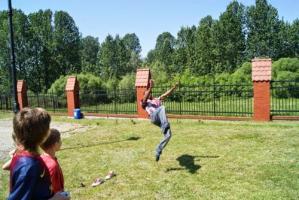 Ponieważ w sobotę było bardzo gorąco druh Kamil pozwolił wszystkim ochlapywać się wodą ze strażackiego węża.