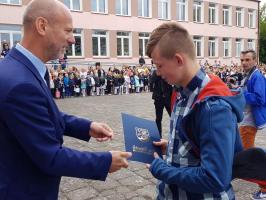 Na uroczystym apelu wiele nagród otrzymali również uczniowie, którzy reprezentowali szkołę oraz Ci z najlepszymi wynikami w nauce. W uroczystości brał udział burmistrz Białogardu Krzysztof Bagiński.