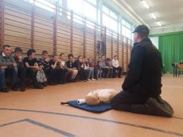Uczniowie po zapoznaniu się z treścią pytań mieli czas do namysłu. Pytania były trudne i dotyczyły między innymi zagadnień związanych z codzienną pracą strażaków oraz udzielaniem pierwszej pomocy przedmedycznej osobom poszkodowanym.