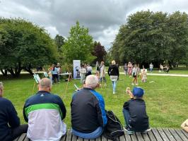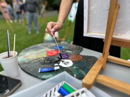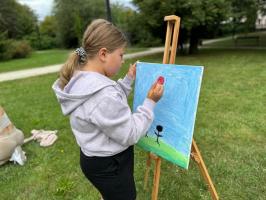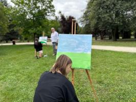 Atmosfera wydarzenia była wyjątkowa – pełna kreatywności, radości i barw. Uczestnicy z ogromnym zapałem oddawali się malarskiej pasji, a ich prace wypełniały park niezwykłą energią i kolorem. Spotkanie okazało się nie tylko okazją do artystycznej ekspresji, lecz także do integracji i wspólnego spędzenia czasu w inspirującym otoczeniu.