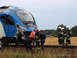 Pociąg osobowy relacji Szczecin - Słupsk uderzył z dużą siłą w naczepę przejeżdżającej przez tory ciężarówki. Pociągiem jechało ponad 100 pasażerów.
