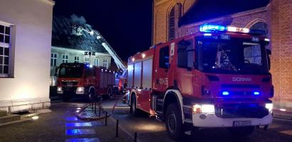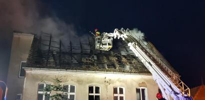Dziś w nocy o godzinie 4.19 dyżurny PSP Białogard otrzymał informację o wybuchu pożaru w Karlinie. Strażacy błyskawicznie udali się na miejsce gdzie okazało się, że dwie osoby potrzebują pomocy w celu ewakuacji z budynku w którym płonęła klatka schodowa. Kobieta i mężczyzna w wieku 34 lat znajdowali się na piętrze. Zostali ewakuowani przy użyciu specjalistycznego podnośnika. W gaszeniu brało udział 5 zastępów straży pożarnej w tym 21 strażaków. Na szczęście nikt nie ucierpiał.