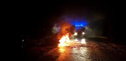 Pożar samochodu na trasie Białogard - Stanomino. Mercedes spłonął doszczętnie.