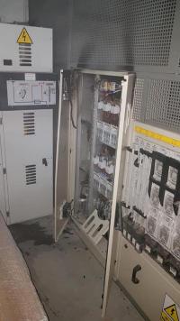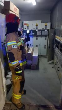 Strażacy po dojeździe na miejsce zdarzenia, zabezpieczyli teren działań i stwierdzili, że pożar wybuchł w rozdzielni prądu średniego napięcia. Pożar ugaszono gaśnicą CO2. Całe pomieszczenie sprawdzono przy pomocy kamery termowizyjnej oraz dodatkowo przewietrzono i oddymiono.