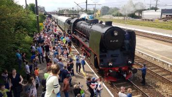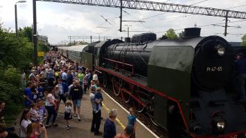 Przejazd pociągu PIRAT przez Białogard - Międzynarodowy Dzień Dziecka.