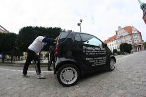 W sobotę na Placu Wolności Dariusz Słowik postanowił przepchnąć smarta na dystans ponad 42 km.
