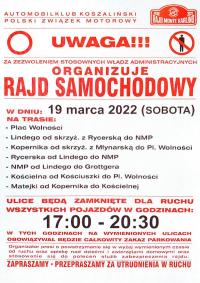 Uwaga z 19 na 20 marca odbędzie się Rajd Samochodowy Monte Karlino.