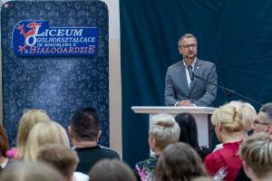 Uroczystość była również okazją do wyrażenia podziękowań dla kadry pedagogicznej oraz pracowników szkoły. – Dziękuję dyrektorowi Danielowi Glince za zaproszenie na dzisiejszą uroczystość, a całemu gronu pedagogicznemu i pracownikom LO za codzienną, pełną zaangażowania pracę na rzecz naszej młodzieży – podkreślił przedstawiciel władz powiatu.