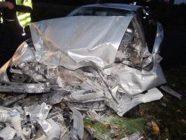 Na prostym odcinku drogi kierujący samochodem Alfa Romeo z niewyjaśnionych przyczyn stracił panowanie nad pojazdem i czołowo zderzył się z jadącym z przeciwka Citroenem Berlingo.