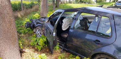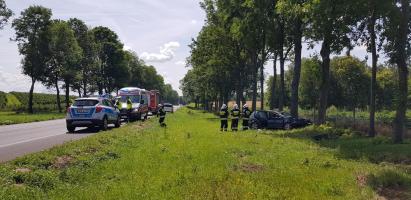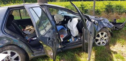 Jak udało nam się ustalić na miejscu zdarzenia autem podróżowały dwie osoby, kobieta i mężczyzna w wieku około 30 lat. Para była w trasie, niestety mężczyzna kierujący samochodem zasnął z przemęczenia i na łuku auto wypadło z drogi. Samochód dachował kilka razy i zatrzymał się tuż przed drzewem. W wyniku tego zdarzenia ciężko ranny został kierowca volkswagena (obywatel Niemiec). Jego pasażerka odniosła lekkie obrażenia, oboje zostali przetransportowani do szpitala.