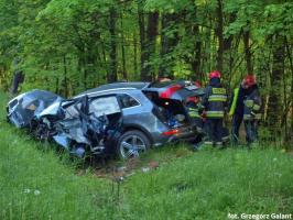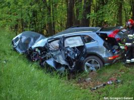 Na drodze nr 163 Białogard - Połczyn Zdrój w miejscowości Przegonia o godz 5:40 kierujący Audi prawdopodobnie zasnął za kierownicą w wyniku czego zjechał z drogi i uderzył w drzewo. Dwie ranne osoby zostały przetransportowane do szpitala. Droga była zablokowana.