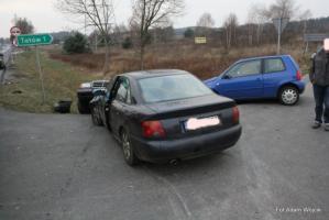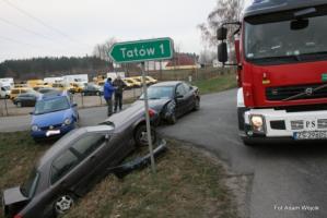 O godzinie 12.25 Na drodze krajowej nr 6, czyli Szczecin - Gdańsk, zderzyły się trzy samochody. Audi uderzyło w Mercedesa, który skręcał w lewo do Tatowa. Pod wpływem uderzenia Mercedes poleciał na Volkswagena Lupo, który właśnie w tym czasie wyjeżdżał z Tatowa.