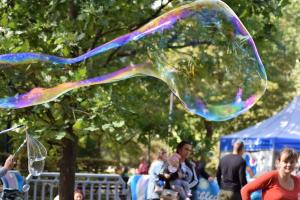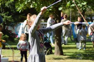 Wydarzenie jakim było Bubble Day w białogardzkim parku Orła Białego przyciągnęło mnóstwo dzieci, tych większych i tych mniejszych. Dmuchańce, zabawy z animatorami, pokazy ogromnych baniek i konkursy z nagrodami, te oraz inne atrakcje dały maluchom wspaniałą zabawę i wiele radości.