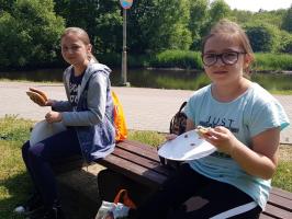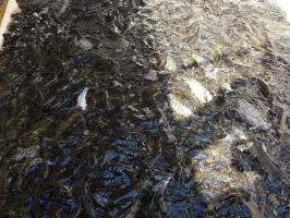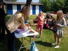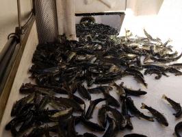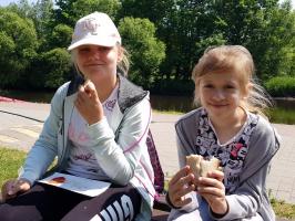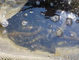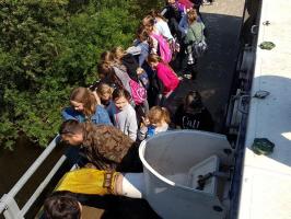 Zarybienia Parsęty smoltem troci i łososia - dzieci biorą udział.