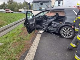Zderzenie auta osobowego i ciężarówki na obwodnicy Karlina. Policja ustala okoliczności tego zdarzenia. Występują utrudnienia w ruchu drogowym.